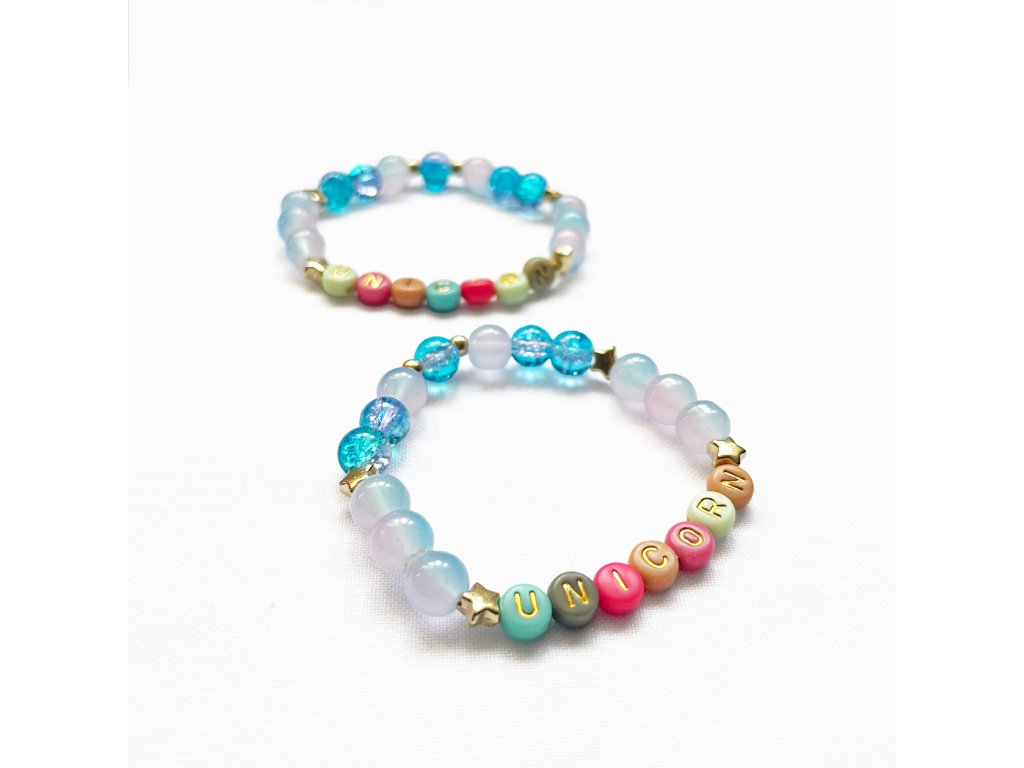 Každý náramek je ručně vyrobený z krásných, skleněných korálků a barevných písmenek, takže nejen krásně vypadají, ale taky dlouho vydrží.